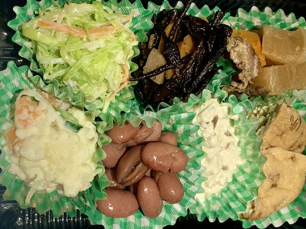 16時ごろ伺いました。沢山の種類のお惣菜がありどれにするか迷ってしまいましたが、夜ご飯に、日替わり弁当を注文しました。お米の量は3つから選べます。また、メインを好きな惣菜から選べます。メインをあじの南蛮漬け、そして豆腐フライも入れて頂きました。またそのほか、もやしサラダ、ポテトサラダ、モロヘイヤの和物、煮豆、ひじきと、沢山の惣菜が入っています。沢山の惣菜が入っていますので、色々な味を楽しむことができました!また、どの惣菜も薄味で、健康的だと思います。すでに売り切れとなっている惣菜もあったので、次回は早く行きたい! (訪問:2020/09/11)