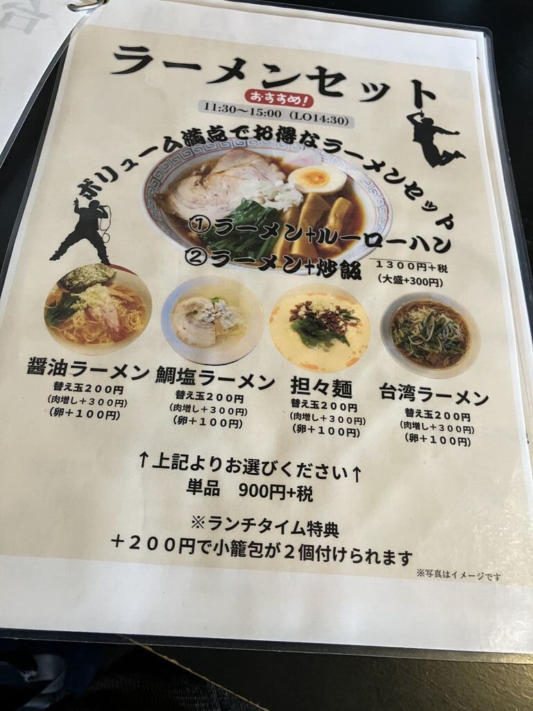 夜の利用はありましたが、平日ランチに初めて行ってきました。ラーメンセットから鯛塩ラーメン+ルーローハンセット、ランチメニューからレバニラを注文。LINEクーポンで小籠包を頂きました。ボリュームたっぷりのレバニラはライスとスープが付いてきます。衣をつけて一度揚げてあるのでレバーの臭みなどがなく食べやすかったです。鯛塩ラーメンも優しい味で美味しく、初めて食べたルーローハンもしっかり濃いめの味付けでした。熱々の小籠包も刻み生姜と黒酢で頂き、美味しかったです。期間限定の麻辣湯も食べてみたくなりました。 (訪問:2025/09/02)