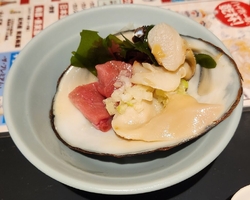 今日はFacebookグループのオフ会で久しぶりの訪問です。バスとLRT乗り継いで訪問しました。注文は「飲み放題2時間 5,000円」サラダ、ホッキガイとホタテの葱ソース、小籠包、肉焼売、棒餃子、海老チリ、麻婆豆腐(牛すじ)、魯肉飯と品数豊富で満足のコースです。最後は新作の鯛塩ラーメンを味見させていただきお腹一杯です。 (訪問:2025/06/03)