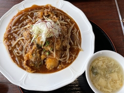 土曜夜の19時頃に行ってみました。着いた時は空いてましたが、続々と来客があり帰る頃には、ほぼ満席でした。注文したのは小籠包プレーン(4ケ)、油淋鶏(小)、レバニラ炒め(小)にご飯セット(白米、キムチ、スープ)を付けました。有りがたい事に牛スジ煮込みをサービスで頂きました。お料理の(小)は1~2人前との事でしたが結構ボリュームがあり、レバニラのレバーが厚めでゴロゴロ入っており、食べきれなくて持ち帰りパック(¥30)を購入しレバニラ炒めはテイクアウトしました。メニュー表以外に店内のボードに気になるメニューが沢山ありました。激辛麻婆麺が、どれだけ激辛なのか気になるところです。サービスの牛スジ煮込みも味が染みしてて柔らかくて子供も食べやすいと言う程に美味しかったです。ありがとうございました。 (訪問:2024/09/28)