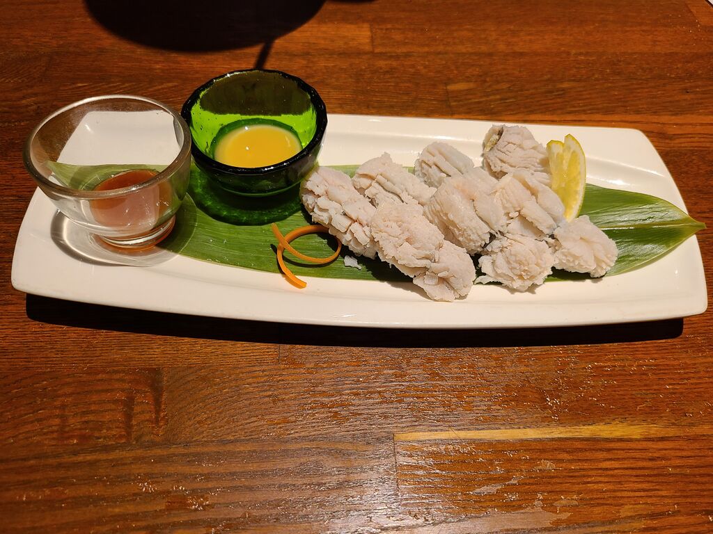 久しぶりのどんさん亭へ夕食に行きました。アルコールはなしの食事のみは久しぶり。でも冬といえば白子ポン酢!お刺身の盛り合わせも注文。メインは天丼。ボリュームがあり美味しかったです。 (訪問:2023/02/23)