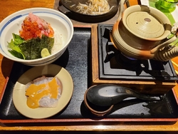 久しぶりに伺いました。季節限定や日替わりのメニューがあるのでいつも楽しみにしてます。はもの湯引きがあったので注文しました。ソースも2種類あって美味しかったです。贅沢丼は海鮮が色々乗っていて食べ終わると、ご飯のお代わりがもらえてたいのお刺身乗せてだしで鯛茶漬け風になり2度楽しめます。 (訪問:2021/07/11)