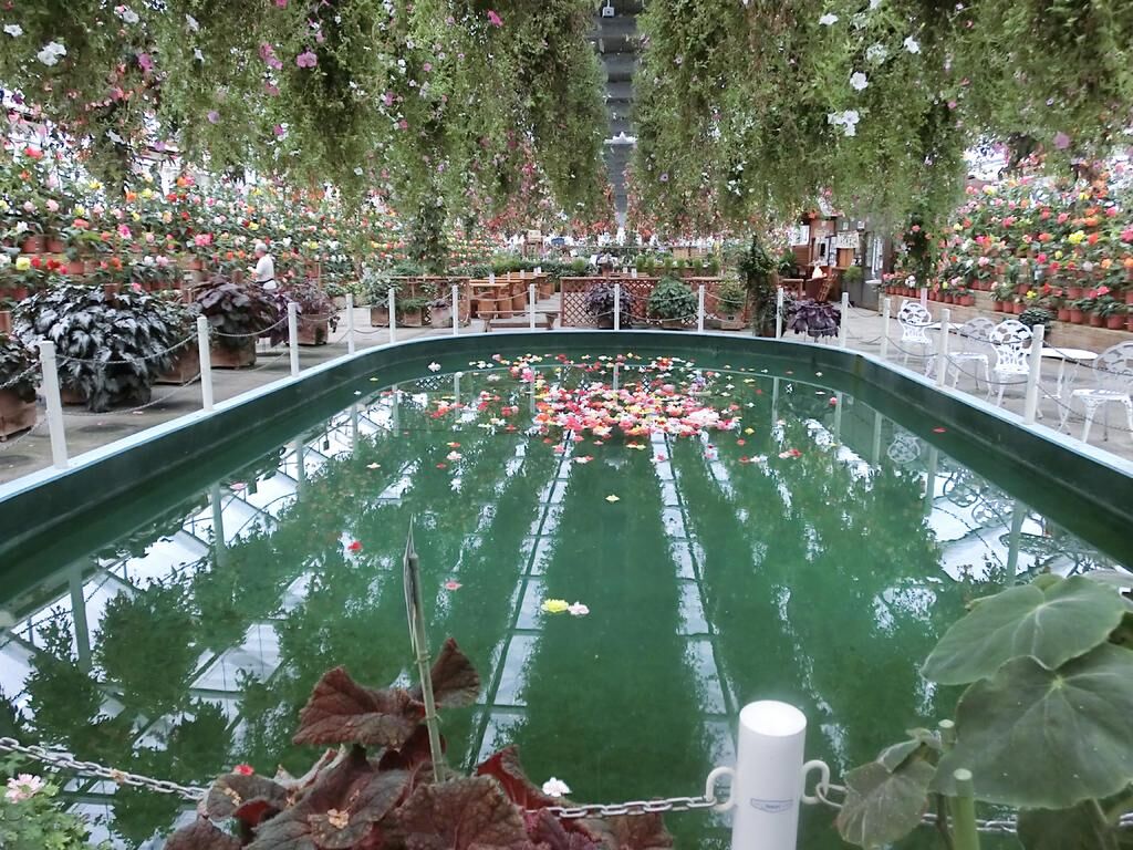 温室内はとてもひろくベコニアは天井からいろいろな種類があります。中央に池があり、きれいなベコニアの花びらがたくさん浮いています。とても印象深かったです。植物が安く売っています。店員さんもとてもにこやかに接してくれました。今日私は年間パスポートを申し込みました。ひよこやうさぎさんもいてこどもたちもよろこんでいました。おすすめです。 (訪問:2012/08)