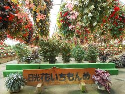 家族旅行で鬼怒川温泉に行った時に立ち寄りました。ベコニアをはじめとする5000鉢の花には、ほんとにびっくり。丁度パンフレットの撮影をしていたところだったので、私達4人家族にモデルの依頼があり、ちゃっかり撮影に参加してしまいました。パンフレットに夫婦、女の子二人の写真があったら、それは私たちです。(^^ゞ (訪問:2002/08)