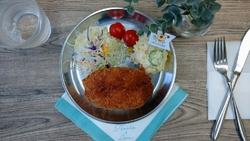 平日の夕方に伺いました。夕方ですとお惣菜が売り切れの時もありますが、メンチカツ(110円)とポテトサラダ(180円)とハムカツ(65円)を購入しました。レシ-トを見て税込みでこの価格なので利益が心配になります。写真の粗挽きのお肉と大き目の玉ねぎのメンチカツはボリュ-ム・価格ともに大満足です。グラスに水を注いで普段は自宅で使わないナイフを並べたら、何となく外食気分が味わえました。この日は千切りキャベツが売り切れでしたが、写真のプレ-トのメニュ-がほぼそろいますので、お時間がある方は自宅で外食気分をお試しくださいませ。 (訪問:2021/05/28)