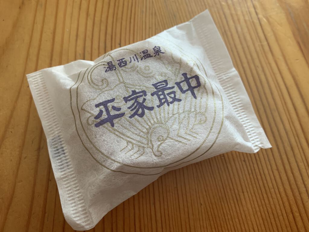 湯西川温泉と云えば、平家最中。甘さ控えめの粒あんの上品なお味。平安の都を感じさせますね。皮には平家の家紋の丸に揚羽。落人らしく、家紋を隠したバージョンもある様子。勉強になりますね^_^ (訪問:2025/03/02)