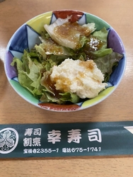 開店時間に行き、ランチ寿司(¥1,100税込)を注文。サラダ、茶碗蒸し、小鉢、味噌汁付きのセットです。最初に茶碗蒸しなどのセットメニューが運ばれ、最後にお寿司が運ばれて来た時には、きれいなにぎり寿司で丁寧に作られているなぁと思いました。ネタも新鮮で美味しく、リーズナブルでランチメニューも色々あり、オススメ寿司店です。帰りは満車状態の人気店です。 (訪問:2024/01/30)