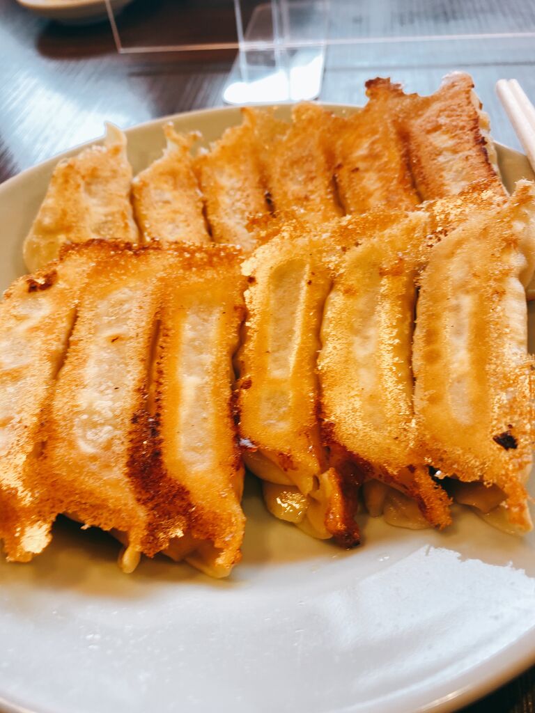 お昼に鹿沼市のみんみんさんに伺いました!ちょうど、お昼の時間に伺ったので、満席で1組待ちの状態。昨日から食券を買うスタイルになったとの事でした。単品注文も出来ますが、私は焼餃子ダブル(2人前)と水餃子シングル(1人前)、ライス付きのセットでオーダー!そこでの注意点はライスセットで食券を買ってしまうとライス大盛りが出来なくなってしまうので、ライス大盛りを注文したい場合は、単品で大ライスを注文しなくてはいけません。店内に通されて10分もしないうちに料理提供♪みんみんさんは焼き方が上手い!餡は少なめですが、焼き方がちょうど良い感じです!水餃子は汁に味が付いていないので、器に直接調味料を入れるか、焼餃子と同じようにお小皿にいれた調味料をつけて食べるかになります!店内も綺麗なので、快適に宇都宮餃子を堪能する事が出来ました! (訪問:2021/07/08)