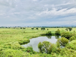 渡良瀬遊水地に行きました。栃木、群馬、埼玉、茨城の県境にあり、それぞれの県を出たり入ったりできて楽しいです。一周すると5.4キロあるそうで、ロードバイクで走っている方がたくさんいました。上から見ると全体像がハート型になっていて可愛いです。 (訪問:2024/06/22)