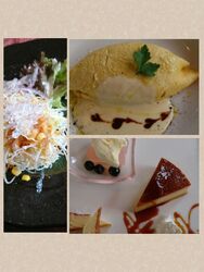 以前、駐車場が一杯で断念し、今回初めて遅めのランチを頂きました。私はオムライスとハンバーグで迷ったのですが、チーズフォンデュオムライス・Aセット(1350円)を注文。夫は牛バラ炒め・Aセット(1350円)を注文。オムライスの上にチーズフォンデュソースがかかっていて、その上にバルサミコ酢で模様が描かれていました。バルサミコ酢があることで、本当にさっぱり最後まで美味しく食べる事が出来ました。夫の牛バラ炒めは、ガッツリボリューミーでした。メイン以外はサラダ、スープ、デザートが来るのですが、サラダも大根サラダとレタスサラダ、それぞれ別のドレッシングがかかっていて、ちょっと嬉しかったです。デザートはカスタードプリン、シフォンケーキ、パイの上にバニラアイスが乗ったものでした。3種盛りで、デザートをしっかり食べたな~と大満足。飲み物は私がピーチコラーゲンジュース、夫がコーヒーでした。鹿沼でまた美味しいお店を見つけることが出来て、良かったです♪ (訪問:2019/11/03)