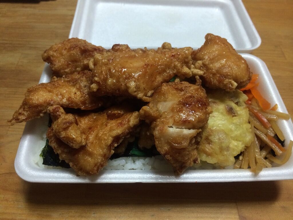 いつもお客さんの絶えないお店ですが、自粛ムードで忙しそうでした。お昼時だから余計でしょうか。ほっかほっか大将さんで毎回ブレずに頼むから揚げ弁当を頼みました。相変わらずのハミ出し具合いの大きい唐揚げのお弁当。コスパ抜群です。 (訪問:2020/04/18)
