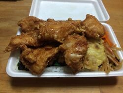 大好きなお弁当屋さんです。たまには違うメニューを…と、思うのですが、「からあげ弁当」を注文しちゃいます。蓋が閉まらないくらい大きいからあげが魅力で、味付けもちょうどよくて、お腹いっぱいの大満足のお弁当です。お昼に食べきれない時は、夜に晩酌のおつまみにして、2度楽しませていただいております(*^^*) (訪問:2020/07/11)