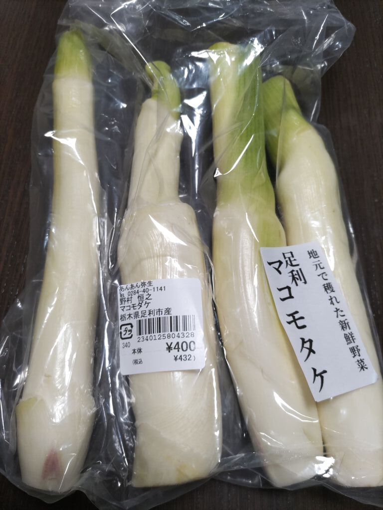 毎週末のように野菜を買いに行っています。【マコモタケ(400円税込)】というものを初めて購入しました。お勧めのレシピも近くに用意してあったので参考にきんぴらと肉巻きを作りました。筍のような食感で美味しかったです。珍しい野菜を栽培している農家さんが足利市にもあるのは嬉しいです。 (訪問:2022/10/23)