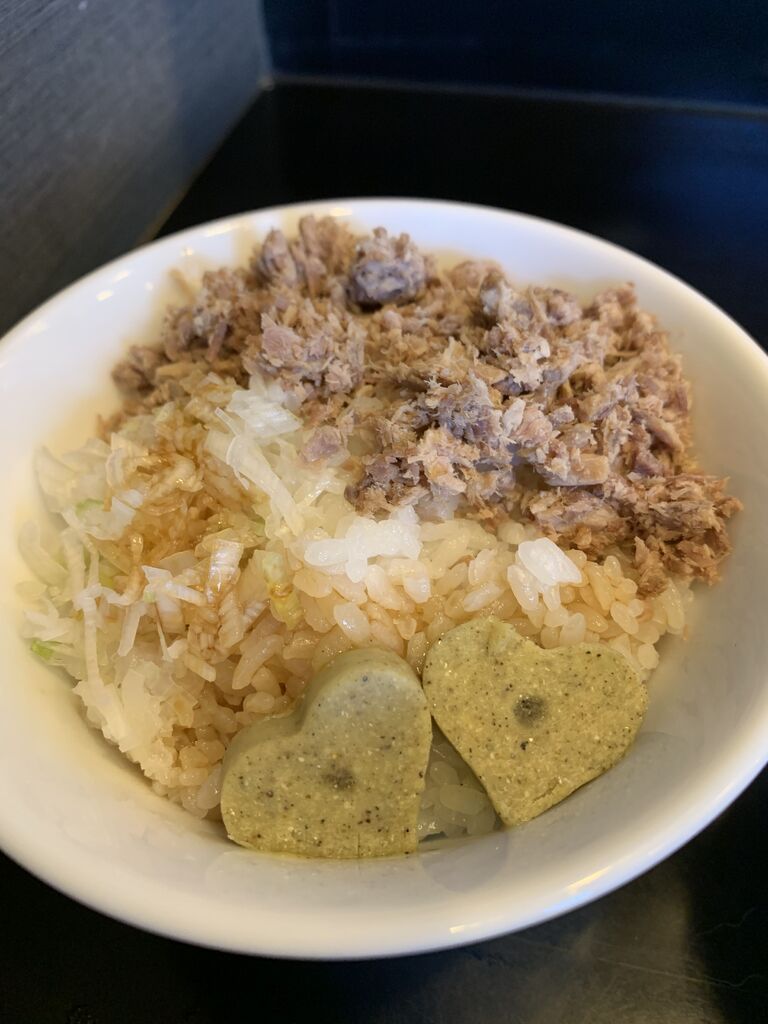 いつも長蛇の列ができているので、今回は早めに伺いました。あまり待たずに入店!私は煮干しがガッツリ効いたハードが大好きです(o^^o)限定何食かなので食べたい方はお早めに。スープが真っ黒ですけど、苦味なんてなく煮干しの旨味がしっかり効いたスープです。麺が細麺ストレートなのも良い!角切りのメンマやチャーシューが肉厚で食べ応えがあります。玉ねぎやネギがサッパリしてくれます。そして、コンティニューという名の追い玉を。このままかき混ぜて食べても油そばみたいで美味しいのですが、スープにつけても良いですね。スープに溶けた風味が重なってよりコクが生まれます。食べ終わったあとの口の余韻も最高です(^^) (訪問:2021/02/11)