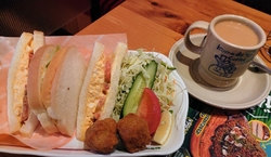 平日13:40頃訪問。平日14時まで注文可の昼コメプレートから、<たまとまレタスサンド>と<カフェインレスコーヒー>を。玉子がたっぷりです!コーヒーもなみなみと注がれていました。木目の温かみがある空間で落ち着きます♪ (訪問:2025/11/20)