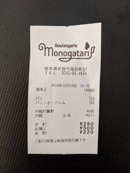 年末でお休みのパン屋さんが多い中、こちら営業していました。クリームパンを購入するとレシートには、パン・オ・クレムとなんだかとてもおしゃれに記載。名前負けすることなく、バニラビーンズの黒い粒粒が見えるカスタードクリームは、固さも甘さもちょうど良くとてもおいしかったです。エコバックを持参しないと、袋は大小2種類あって(小は5円)購入となりますのでご注意ください。 (訪問:2019/12/31)