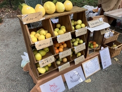 11月最後の日曜日、今年最後のナカマルシェが開催されていました。午前中は仕事があったので、お昼過ぎに到着。参道に様々なお店が並び、見ているだけでワクワクしちゃいます。遅い時間だったため、totoさんのピザは完売…残念。結い家さんのうどんは食べることが出来ました。キャベツにさつまいも、里芋、にんじん、紫のものは何かな?と思ったら、玉ねぎでした。あまりの甘さにびっくり!菊の花の綺麗な黄色があざやかで、目にも楽しませていただきました。那珂川町でレモンの栽培をされている「ちほのさわやかレモン屋さん」でホットレモネードをいただき、レモンの濃さにびっくり!たくさんの種類のレモンに興味津々。レモンガチャで「フレーバーグリーン(種なしライム)」と「赤レモン」をゲット!レモンレシピもいただき、どうやって食べようかな~と考え中です。フラダンスを眺めたり、美味しいおやつをお土産に買ったり。短い時間でしたが、素敵なひと時を過ごせました。毎回思うことですが、ナカマルシェの穏やか~な雰囲気が大好きです。 (訪問:2025/11/30)