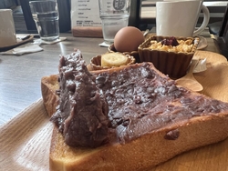 暑い暑ーい日曜日。午後からお仕事なので、気持ちを上向きにさせるために、モーニングをいただきに伺いました。いつも近くを通るたびに、車がいっぱいだなぁと思っていたので満車を覚悟していたのですが、この日はラッキーなことに空いていました。すぐさま車を停めて、いざお店の中へ。外が眺められる窓辺の席に座り「小倉トースト珈琲set690円」を注文です。運ばれてきたトーストには、以前の記憶よりも更にもりもりなあんこがたっぷり!さくさくもっちりのトーストに、たっぷりあんこを乗せていただく至福の時間でした。ゆっくりとコーヒーを飲んで外を眺めると、綺麗な青空が広がります。…今日も暑そうだなぁ…。でも、美味しいモーニングがいただけたので、その後のお仕事も頑張れました。次回はマフィンもいただきたいです。美味しい幸せをありがとうございました。ごちそうさまでした〜。 (訪問:2025/07/27)