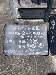 高台にある素敵なモーニングカフェ、2-7珈琲の丘で『小倉トースト珈琲set』をいただきました。少し道に雪が残る寒い朝でしたが、「薪ストーブを焚いているので、よかったらこちらへどうぞ〜」と、目の前の特等席に案内してくださり、ぬくぬく幸せを感じました。小倉トーストの小倉あんは、変わらずたっぷりだけど甘すぎず、珈琲とメチャ合う♪塩を付けていただく茹で卵も、シリアルがのったヨーグルトも、美味しかったです。食べ終わっても慌てて出ることなく、しばし大人の休日を楽しみ w 、こころもポカポカ。癒やしの朝食、ありがとうございました。 (訪問:2025/01/04)