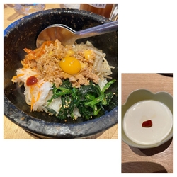 ランチに選べるランチ(¥1,390)を注文。石焼きビビンバを選び、お肉(3種)、サラダ、冷奴、スープ、杏仁豆腐のセットです。お焦げが出来てる熱々のビビンバ美味しくて、お肉を焼きながらランチを楽しめました。ゆったりとした雰囲気でコスパのいいお店です。 (訪問:2025/10/30)