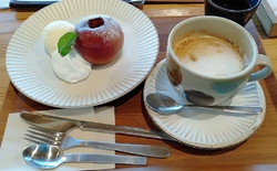 NEWお食事処で「焼きりんご」を頂きました。コンポートのようなスイーツです。島田さんちの林檎を使用しているそうで、シャクシャクとした触感、甘味と酸味がとても美味しい絶品でした!バニラアイスや生クリームを乗せても美味しいし、そのままでも美味しかったです。ホットのカフェラテも、苦みとまろやかさが良い感じで体を癒してくれます。ありがとうございました! (訪問:2025/12/05)
