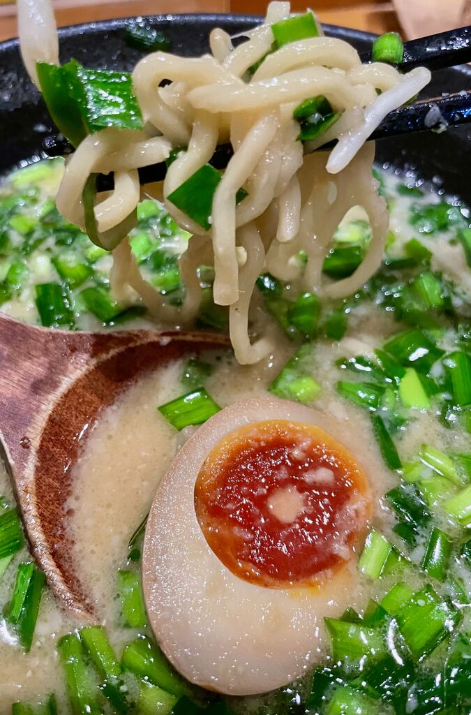 この時期ははまぐりラーメンが美味しいので、それを目的に久々の来店。ですが、期間限定白味噌ラーメンに惹かれてしまい注文。説明書き通り、素直に、生姜、ニラ増し。先ずはスープ。白味噌の優しい味がベースです。生姜を徐々に溶くと味にパンチが出て来ます。ニラのシャキシャキ感もアクセント。炙りチャーシューもいつもながら絶品。麺はもちもちの縮れ太麺が合いますね。旨いです^_^ (訪問:2025/04/22)