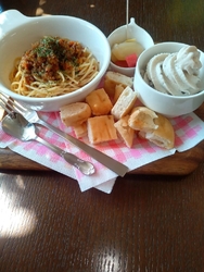 栃ナビでこちらを知り、いってきました。パスタは2種類から選べたので、私は好きなボロネーゼにしました。野菜がたくさんはいっていて、味がおいしかったです。その他ピクルスも野菜の味がおいしかったです。またパンにアイスをつけて食べました。あとほうじ紅茶を初めて飲みましたが、ほうじ茶に近い味わいだと思いました。パスタがおいしかったので、今度はパスタセットを頼みたいです。 (訪問:2026/03/21)