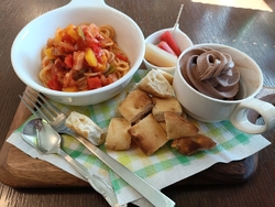 お昼を食べに行きました。このお店は宇都宮の中心部から国道4号線を南に進み、宮の内の交差点をさらに南に進んで、足利銀行雀宮支店の交差点を右に曲がります。ここを道なりに進んだあとセブンイレブン宇都宮若松原2丁目店のところを左に曲がり、北雀宮保育園の隣にあります。外観はおしゃれな建物でおとぎの国に入るような玄関をあけると明るい女性が迎えてくれます。メニューの説明を丁寧にしてくれたので、私はぷっちーワンボードを注文しました。これはビスケットくらいの大きさの揚げパンをフォークで刺してアイスをつけて食べるものです。私はチョコレートアイスにしましたが、揚げパンもアイスもそれぞれおいしいのでそれをつけたらとてもおいしかったです。お店の方に伺ったら、こういう食べ方をするところはほかにはないとのことです。私も生まれてはじめての素敵な経験を出来てとても良かったです。次にパスタはベーコンと野菜のトマトソースパスタにしました。トマトソースがとてもおいしく、またつけ合わせの自家栽培の野菜ピクルスもとてもおいしく、からだに良いなと感じられるものでした。野菜は庭で栽培しているものだそうです。デザートのほうじ紅茶とクッキーを食べながらからだに良いものを食べてからだも喜んでいるなと感じました。お店の方が野菜やトマトソースの良さをお話してくださいましたので、それぞれ自信があるから提供できるのだなと感じました。創業11年とのことで、今まで通りながら気がつかなかったのがとても残念です。こんなに感動した上に、栃ナビのポイントで500円も割引してくれて、本当に良い時間を過ごさせていただき感謝しております。今度は家族を連れてお邪魔したいと思います。これからも宜しくお願いします。 (訪問:2024/08/28)
