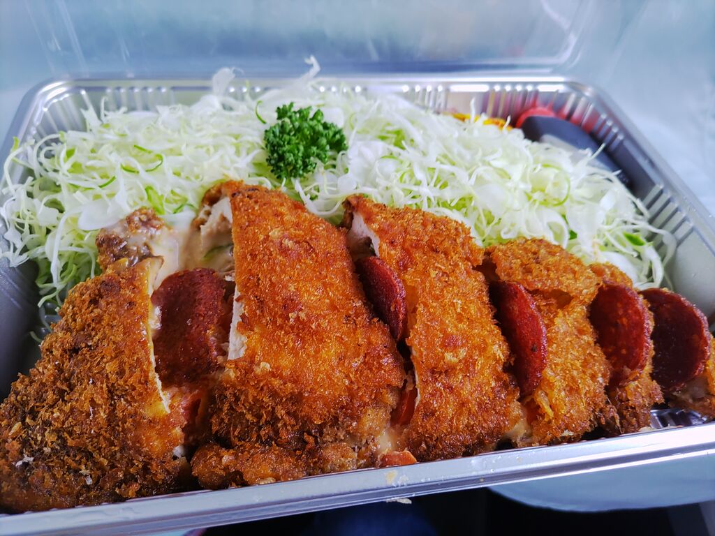 ピザかつとサラダかつをテイクアウトいたしました。たっぷりのキャベツを従えて、超でっかいかつがどーん!!とパックいっぱいに寝そべってます。お料理単品のテイクアウトにもかかわらず、すっごい重みがあります。レモンを挟んでいるのがサラダかつ。サラミを挟んでいるのがピザかつです。どちらのかつも衣がかりっかり。キャベツの水分で一部湿っぽくなっているところもありますが、それ以外の衣はスーパーかりかりです。豚肉の中に入っている具材の水分は全く染み出てません。お肉がしっかりと具材の水分をホールドしてます。お見事です!!すっごくおいしいです。栄養の方より気にせずお腹いっぱい食べられます。ほんと旨いです。主婦にはちょっとお値段厳しかったのですが、思い切って頂いて良かったです。これからちょっとずつ家計削って、今度は家族連れでおじゃましたいです。 (訪問:2021/05/28)