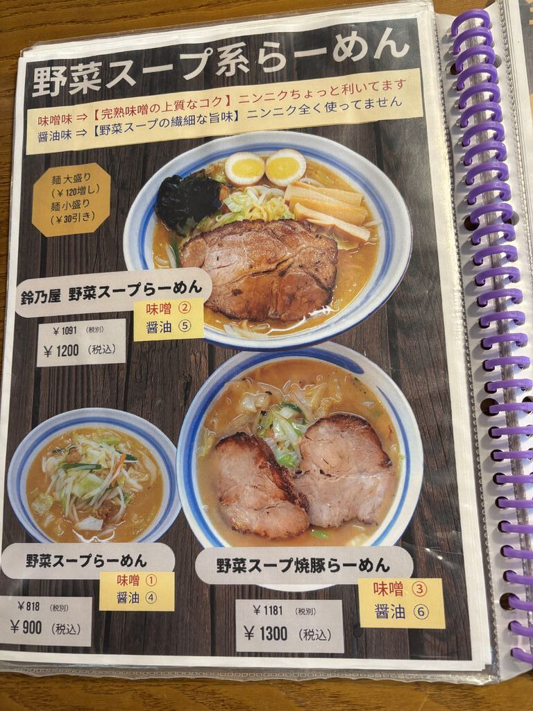 数ヶ月ぶりに伺いました。ここに来ると決まって【鈴乃屋野菜味噌ラーメン】を食べます。野菜は炒めてあるので スープは野菜の旨みもありコクがあります。暑い日でしたが店内は冷房が効いているので夏でも美味しく食べられます(*´∀`) (訪問:2025/06/29)