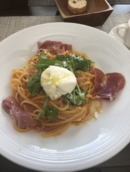 初めて店内でお食事をいただきました。子ども連れでしたが子ども用の椅子やキッズセットもあり、アットホームな雰囲気で楽しく食事できました。Aランチ(1300円)はパスタにスープ、サラダ、パン、ドリンクがつきます。+500円で生ハムとブラータチーズのパスタを選びました。生麺の食感が絶妙でとっても美味しいです。キッズのパスタも喜んで食べていました。素敵なお店なのでぜひまた伺いたいです。 (訪問:2022/10/01)
