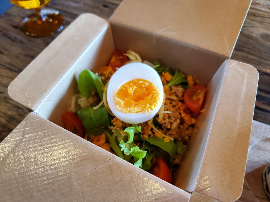 昼御飯をうっかり食べそこね、こちらなら美味しいランチに出会えそうと14時過ぎにお邪魔しました。最近混雑してるこちらですが、タイミング良く車が一台しか停まっておらずラッキー!早速入店し、メニューを拝見。『タコライス600円(セット価格)』『カフェラテタピオカ550円』をオーダー、席でスタンバイ。ちょっぴりスパイシーなタコライスにはカリっと食感の砕かれたトルティーヤがイン^^お肉のしっとりとカリっとの違う食感と味が良く、ペロリと完食。レタスやトマトもはいっていてさっぱりした後味に。ドリンクとセットにすることでお得に頂けるこちら。他にハンバーグもありました。ドリンクのタピオカはホットにすることも可能。と言うことでお願いしちゃいました。美味しいカフェラテにほんのり甘いモチモチのタピオカがたっぷり♪甘さ無しのドリンクなのでお食事にもピッタリでした。プリンなどのスイーツも豊富、ぜひ次回の楽しみにしたいですね。 (訪問:2020/12/06)