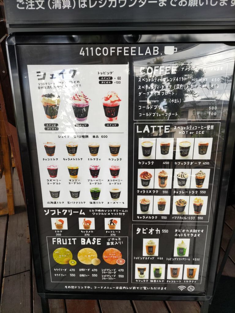 今日は、佐野市 411 COFFEE LAB.さんに、始めて来ました。うちの奥さんが、友達から、素敵な、カフェがあるよ。と聞いて、来ました。本当に素敵な、カフェですね。外観も、店内も素敵ですね。今日は、白桃ソーダー、ラズベリーヨーグルトシェイク、とろける珈琲プリン、生キャラメルプリン、チーズケーキです。スタッフさんも、おしゃれで、素敵ですね。ラズベリーヨーグルトシェイク、凄く美味しい。ぜひ一度は、飲んでみてください、美味しいですよ。その他にも、何種類もありましたね。とろける珈琲プリンも、うまい。ほのかなに感じる、珈琲ですが、ほんのり甘さで、とろけました。本当にうまいですね。ランチボックスの案内もあり、ローストビーフ.OR.タコライス、(たっぷり野菜、プラス、18穀米)のランチボックス美味しそうですね。今度、食べてみたいですね。 (訪問:2022/07/10)
