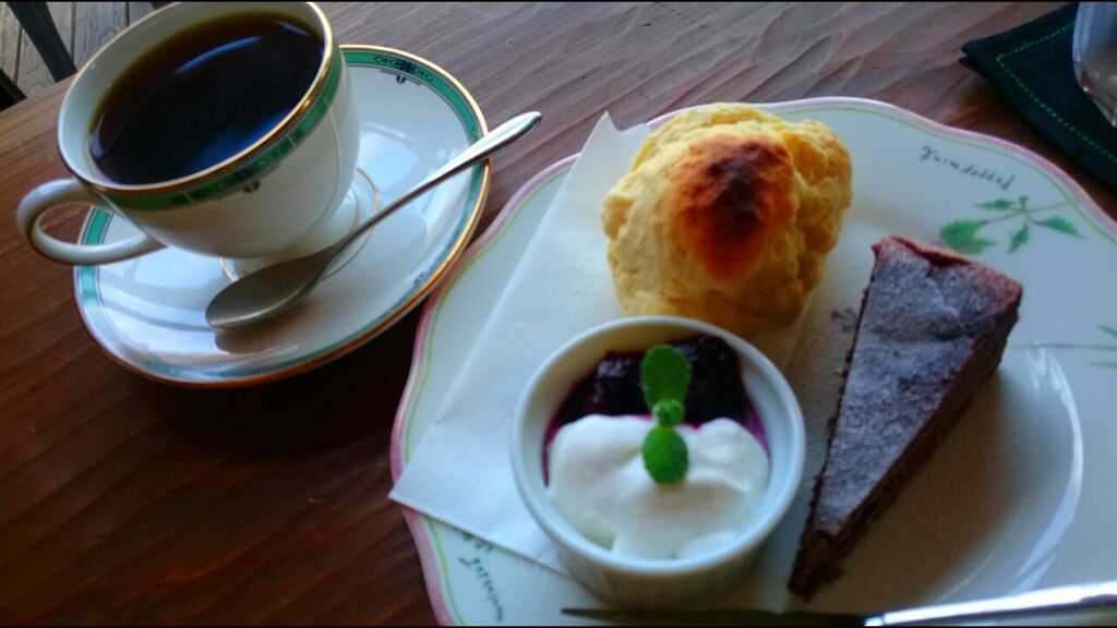 こちらのお庭を見ながらお茶したいなと思い、スイパス利用でお邪魔しちゃいました。お天気も良く、日蔭は心地よかったのでテラス席でのんびりブレイク♪当日のおやつは『スコーン・チーズケーキ』でドリンクは紅茶。相変わらずポットにたっぷり提供される美味しい紅茶にニヤっとしちゃいます。しっとりとしてヨーグルトのような爽やかな酸味のチーズケーキはとっても美味しいのでペロッと頂けちゃいます。大振りのスコーンはほんのり温かくクリームやブルーベリージャムとの相性も抜群!!食べ応えのあるセットに大満足でした。おやつが運ばれてくるまで目の前のお庭を散策させて頂きましたが、可愛いお花がそこここにあり癒してくれますね。たくさんのシロツメクサも生えていたので四葉のクローバーも探してみましたが…。難しいです(笑)素敵な時間を過ごさせて頂きました。 (訪問:2016/05/28)
