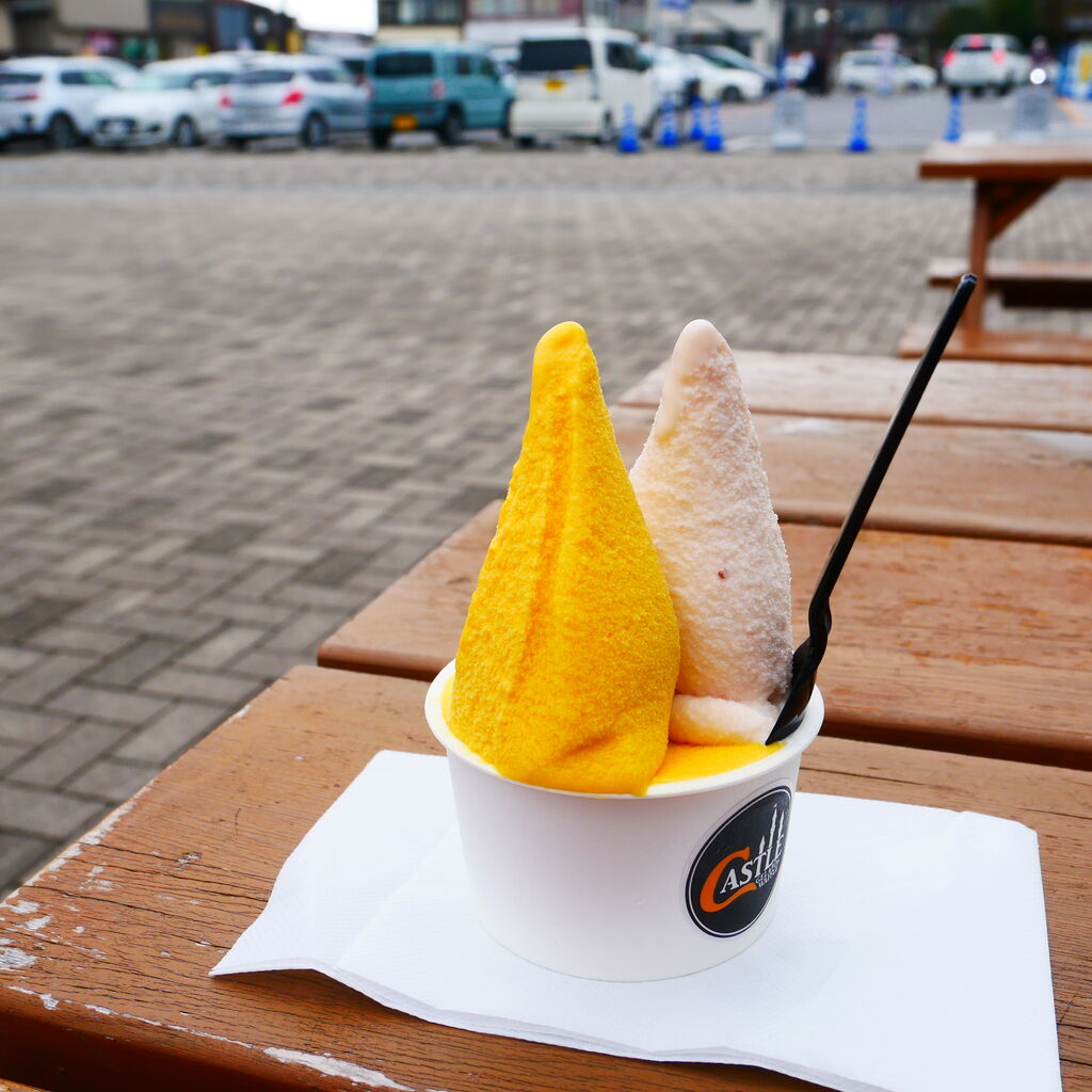 ずっと気になっていたキャッスルさんに伺いました。12種類のフレーバーがあり、おじさんは迷ってしまいましたが、味と色がかぶらないようにセレクト。2つとも濃厚であり、さっぱり感が味わえて、評判通り美味しかったです。またいろんな組み合わせを試してみたいですね。 (訪問:2022/11/29)