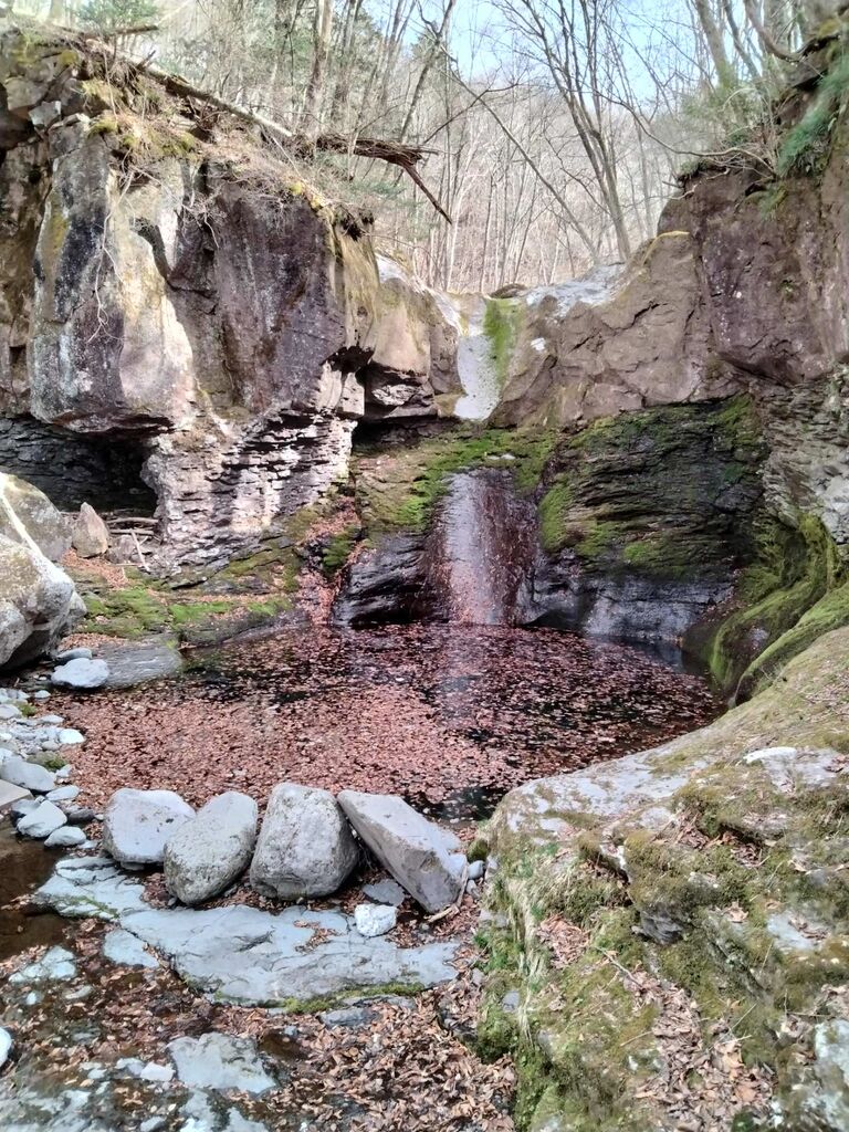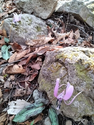 道中カタクリが咲いておりました。標高が高いので今が全盛期なんでしょう。群生地とまではいきませんがアチコチで元気な姿を眺められました。到着すると残念ながら滝は流れていません。幻の滝と言われる所以です。前回は辿り着くまで道中が湿っていましたが今回は乾いていたので想定内であります。カタクリが咲くことが分っただけでも良かったと思いました。 (訪問:2024/04/20)
