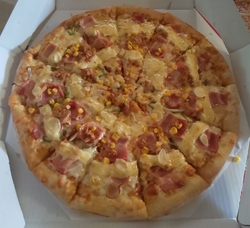今日の昼食はビザでした。娘が休みで食べに来るとのことでいつもより1枚多く購入しました。「シーフードモッツァレラ 2,490円」「ピザッツプルコギ 2,340円」「テリヤキスーパーチキン 2,240円」今日は娘の選択で3種類のピザを購入。いつもと違うピザを楽しめました。 (訪問:2024/04/18)