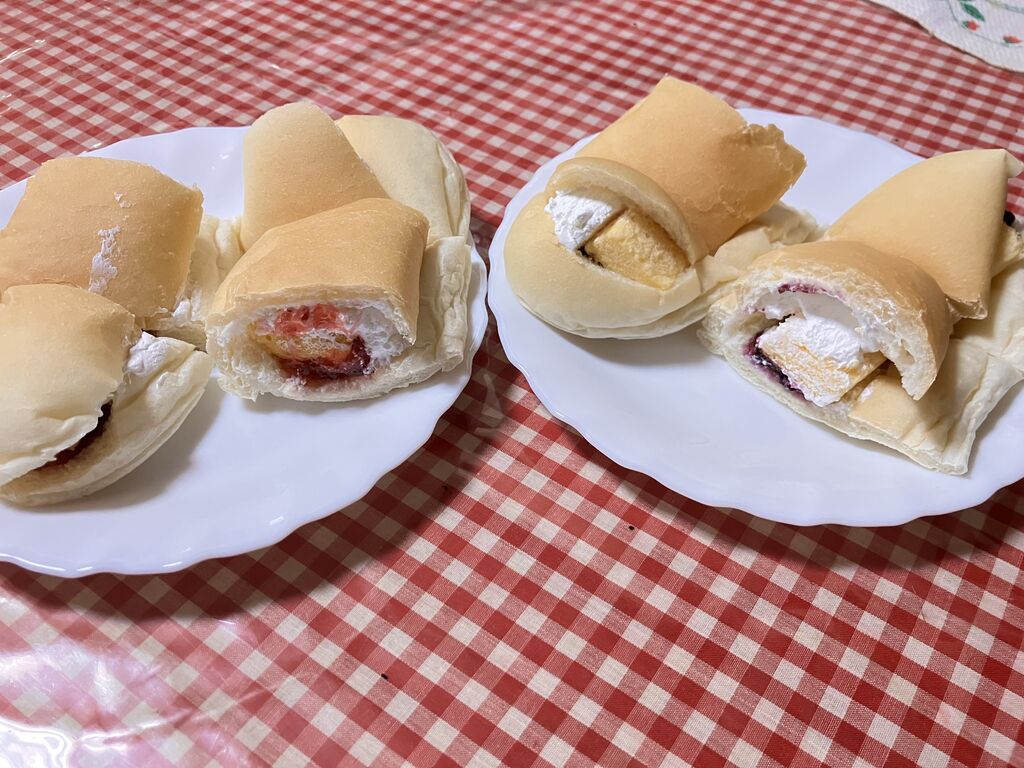 母の通院の付き添いの帰り、お昼ごぱんを買いに伺いました。父母長女に私の4人分で、「焼きそばたまご399円」「白身魚タルタル388円」のしょっぱい系2種、「いちごカステラ399円」「あんカステラ399円」の甘い系2種を購入しました。実家に帰り、それぞれ半分にして好きなものを食べました。私は「白身魚タルタル」と「あんカステラ」を選択。ふあふあしっとりのコッペパンに、サクサクの白身魚フライ、タルタルソースの組み合わせは間違いありません。カステラがサンドされたコッペパンはかなりのボリュームですが、甘さ控えめなあんこになめらかクリーミーな生クリームが加わることで、ぺろりと美味しくいただけちゃいます。お昼前に伺ったのですが、既に売り切れのものもあったので、欲しいパンを確実に購入するなら、お取り置きをお願いしておいた方が良さそうです。また、やわらかパン大好きな母と一緒に伺いたいです。美味しい幸せをありがとうございました。ごちそうさまでした〜。 (訪問:2023/11/09)