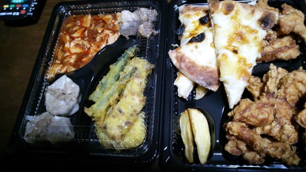 マルゲリータのビザや唐揚げ、春雨サラダをテイクアウトしました。テイクアウト用のケースは、3種類から、用途に合わせて選べます。デザートとお寿司とパン以外は、何でもテイクアウトでき、自宅でこちらのお味を楽しめます。ごちそうさまでした‼ (訪問:2025/09/20)