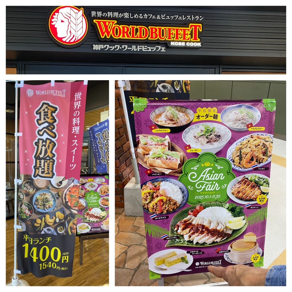 高齢の母のリクエストで、アジアンフェアにシルバー3人でランチ訪問しました。色々な種類が豊富過ぎて完食は無理ですが、カオマンガイ、パッタイ、バインミー、カボチャのチーズケーキ、メンタイピザが特に私の中でヒット。高齢の母も食べたい物が沢山あって楽しいと大喜びで、一生懸命食べていました。平日でも大勢のお客様で賑わっていました。コスパ最高で大満足、満腹です。次はどんなフェアになるか楽しみです。 (訪問:2025/11/04)
