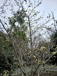 今日は、3月6日(金)の平日です。少し肌寒く、天気は曇っていましたが、散歩に来ました。散歩していると、ふと花が咲いているのを見ると、楽しくなります。今は、ロウバイ、サンシュユ、白梅、スミレと咲いています。そして、池を見ると、カモが泳いでいたり、丘で羽を休めていたりと、見ているだけでも楽しいです。 (訪問:2026/03/06)