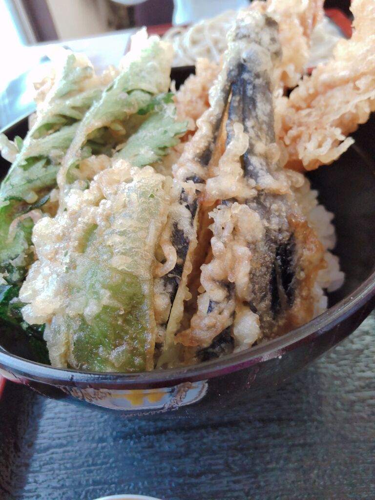 またまたやって来ました!山あげ祭りを堪能した後に行った以来です!迷わず、いつもの!天丼セットのお蕎麦をプラス100円で大盛りです。天丼は丼の蓋からしっぽがはみ出ている状態で運ばれてきます。天丼も美味しいけど、お蕎麦は少し太麺だけど、コシがあり香りもよく美味しかったです! (訪問:2025/05/03)