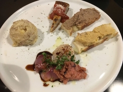 印象に残っているのが、お通しとして出てきた生ハム。生ハムだけでも3種あり、注文が入ってから専用の機械で切り立てを出しているようできれいに薄く切られていてすごく美味しかったです。前菜盛り合わせもいろんなものがあって少量で色々楽しめました。 (訪問:2020/06/12)