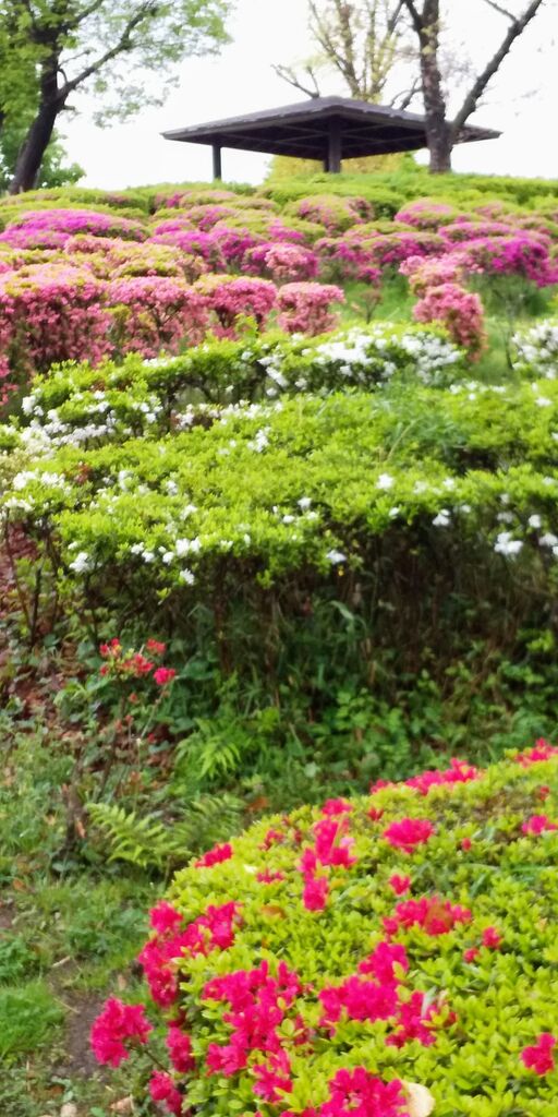 ツツジの咲き具合を見に行きました。ご覧の通りマダマダ完成途上ですが4色のツツジがジワジワと勢力を拡大する様子を見ることが出来ました。高台の東屋に向って傾斜全体がツツジに包まれる様子が目に浮かびます。また1週間後に見に来たいと思います。 (訪問:2021/04/11)