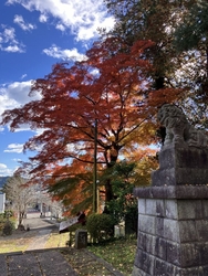 紅葉を観に伺いました。思ったよりも紅葉が早く、少し見頃は過ぎてしまった感じはしましたが、見事なもみじを堪能できました。社務所うしろのイチョウの木は葉が落ちていて、黄色の絨毯が美しかったです。 (訪問:2024/11/23)