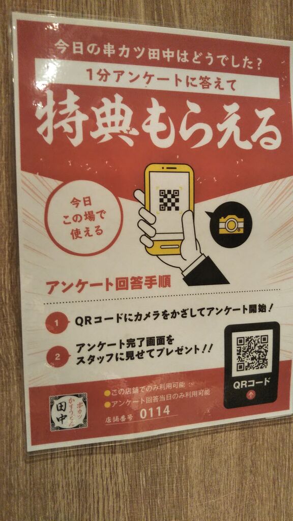 今日は、始めて、串カツ田中 佐野店さんに、夕飯を食べに行きました。子供が、学童で、友達から、美味しいと聞いて、さっそく行きました。店内に入ると、スタッフさんが、アルコールスプレーで、消毒をしてくれます。春の大阪満喫フェアがやっており、値引き商品が、ありました。子供特典で、たこ焼きが、無料で、もらえました。始めて、自分で、焼きました。美味しかったですね。小学生以下の子供は、アイスクリームが、無料で、もらえました。その他、子供特典で、スタッフさんと、ジャンケンして、勝ったら、ドリンクが無料です。あいこは、半額、負けたら、正規の価格、さっそく、ジャンケンしたら、上の子供は、勝ちました。下の子供は、あいこでした。子供が、面白いねと、喜んでいました。今回は、チーズとウズラの玉子と玉ねぎの串カツを頼みました。揚げたてが、提供されて、美味しかったです。(写真を撮るのを忘れました。すみません。) 釜飯が、(3種類ぐらいありました。)今回は、鶏釜飯を頼みました。鶏釜飯が、直ぐに届いたと思ったら、スタッフさんが、固形燃料みたいのに、火をつけてくれて、だいたい、25分ぐらいで、釜飯が炊けますねの声。まさか、串カツ屋さんで、炊きたてが食べられるなんて、凄いですね。出しの効いた、鶏釜飯、おこげも、できており、凄く旨かった。その他にも、焼おにぎりや、唐揚げなど、たくさんのメニューが、あります。また来たいお店ですね。キャベツの食べ放題もありました。(驚いたのが、千切りキャベツが、届くと思ったら、ザク切りのキャベツでした。)スマホで、バーコードリーダーを読み込んで、アンケートに答えると、雪見だいふく(アイス)が、もらえます。さっそく、アンケートに答えて、スタッフさんにスマホを見せると、揚げた雪見だいふくか、普通の雪見だいふく、どちらにしますか?と聞かれたので、普通の雪見だいふくをもらいました。(揚げた雪見だいふくも気になりましたけど、) ごちそうさまでした。スタッフさんも笑顔が、素敵でした。 (訪問:2021/03/26)