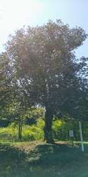 佐野市天然記念物の出原の大椿を見に行きました。樹齢350年、樹高8.5mの大椿は畦道を上がった所にヒッソリとあります。周囲に何もないせいか枝葉を広げて縦横無尽に伸びていて樹勢が盛んです。花が咲く頃また再訪したいと思います。 (訪問:2019/06/25)