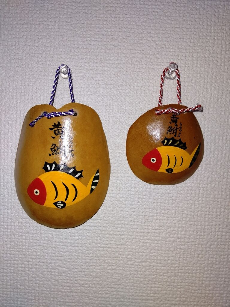 「コロナ除けに黄ぶなグッズを」と、宮の橋近くの酒井干瓢店さんへ伺いました。干瓢に黄ぶなが描かれた飾りが何とも味わい深いです。「黄ぶなになりたいクマノミ」の置物もありましたが、今回はやっぱり黄ぶなをチョイス。赤いお顔の黄色いフナ、可愛らしいです。 (訪問:2020/04/19)