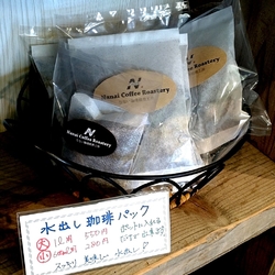 今日は、水出し珈琲パック(各2P入り)とオリジナルアイスコーヒーパックを買い求めました!水出し珈琲の小さなパックは水300mlに1パック入れて3時間ほど抽出〜とても美味しくて美味しくて〜!大きいパックは500ml用・5時間抽出です。アイスコーヒーパック(1L)もこちらで焙煎されている珈琲をネルドリップで抽出、1杯の本格的なアイスコーヒーにほんと癒されます♪自宅用に贈答用に〜またぜひリピートさせて戴きます (*^^*)♪ PS;我が家の贈答品リストに〜!(^v^)v (訪問:2022/07/23)