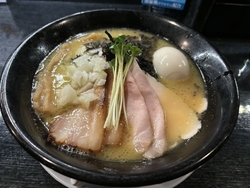 麺双架論さんへ、夜の訪問は初めてです。緊急イベント 18、19日夜限定さよなら鶏豚骨祭鶏豚骨白、TP架論のせ、魚介の和え玉。パツパツの細麺にスープも美味しく最高でした!特にスープは美味すぎて飲み干してしまいました!これで1000円は素晴らしい! (訪問:2024/11/19)